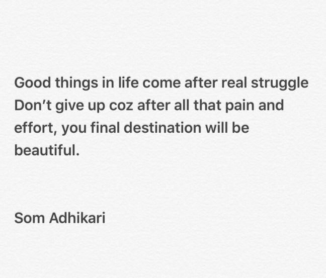 Som Adhikari: “Don’t Give Up” Posted on June 4, 2018 by Som Adhikari (Student, Nepali Interpreter, Volunteer, Personal Blogger) Share this: Click to share on X (Opens in new window) X Click to share on Facebook (Opens in new window) Facebook Like Loading... Related